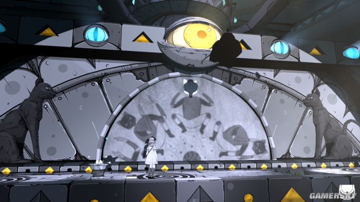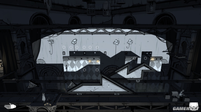 《彩虹坠入》的解谜难度与《留念碑谷》相仿,而且大多半谜题都是用光与影的互动来展开的,在完成每一个关卡的解谜后,还会为我们呈现出一幕幕寄意深长的动画。在这个破旧的歌剧院中,Iris能够在3D室内幕景与光照下的2D投影界面及第行互动,而且能够透过影子来节制原物品,同时,这一设定也是破解大部分谜题的关键地点。